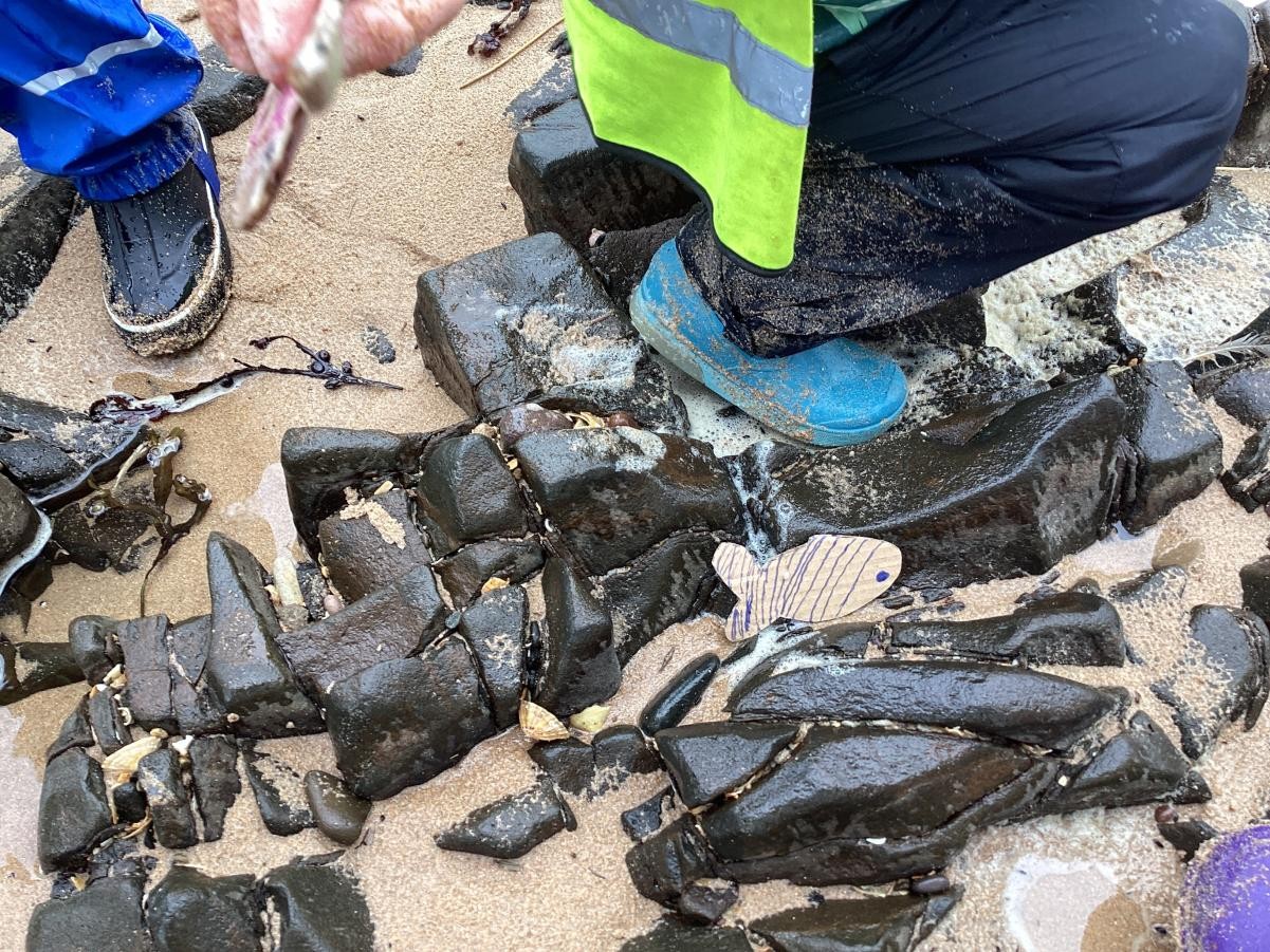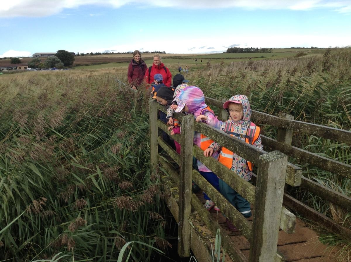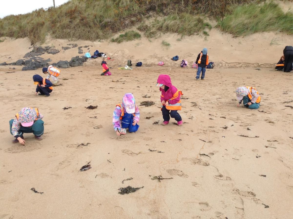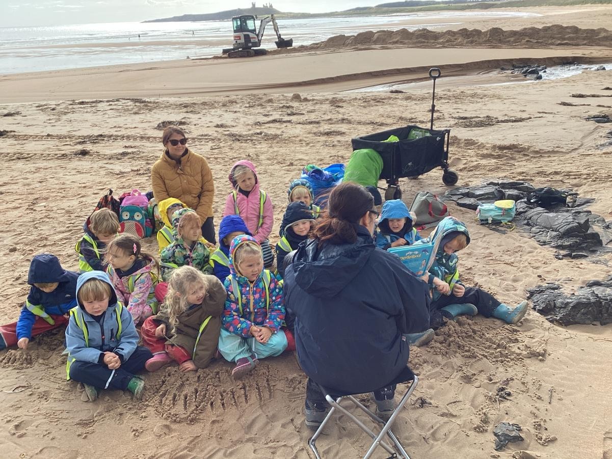 What a wet day today!!! It was a good job we were all prepared with wellies and waterproofs! Miss Murray said that it showed sunshine on her weather app so was disappointed with the rain! However, in true Embleton style, it didn’t dampen our spirits. We headed down to the beach and got our journals out while the sun was shining to write some more senses sentences. We were excited to watch the digger dig a channel to help the flood water drain back to the sea. As it started to drizzle we found a mark making tool, some used feathers and others sticks, to make a picture in the sand out of lines that we were practising in art. These pictures included wavy lines, zigzag lines as well as curved lines and dots. To keep ourselves moving and so that we didn’t get too cold we moved straight into our PE. Again we were practising our throwing and seeing if we could land our beanbag in a hoop. We were much more accurate with our throwing this week. As we began to head back up to school for lunch we took a detour to the bridges in order to see what they were made out of so that we could discuss it when we got back up to school. In the afternoon we discussed the bridges and properties of materials. We also practised drawing lines using music as a stimulus. We had so much fun responding to the music.