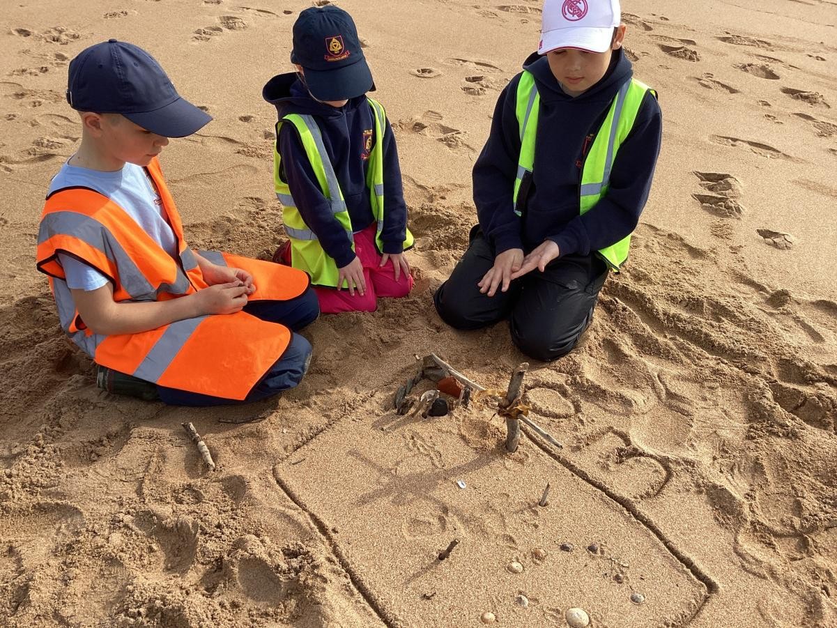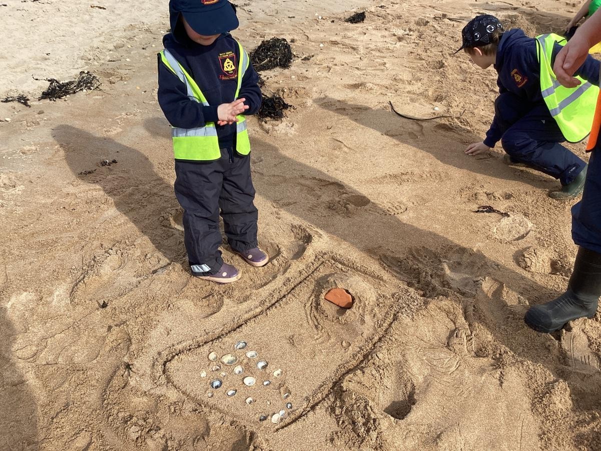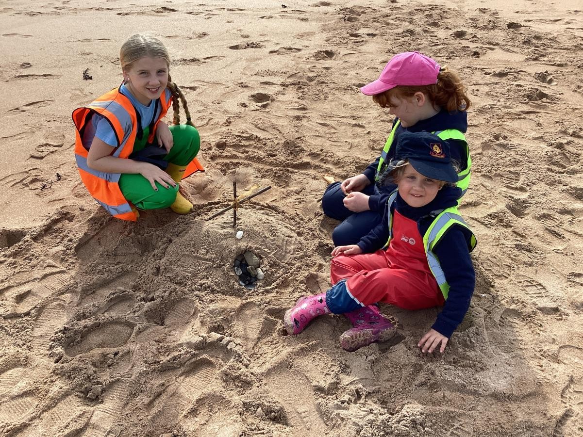 Today was our last beach school before the Easter holidays. We joined in with a retelling of the story of Palm Sunday by adding cheering and donkey noises! After listening to the story we discussed the end of the Easter story and we thought about what the garden with the tomb might have looked like. We worked together and created some amazing Easter gardens.