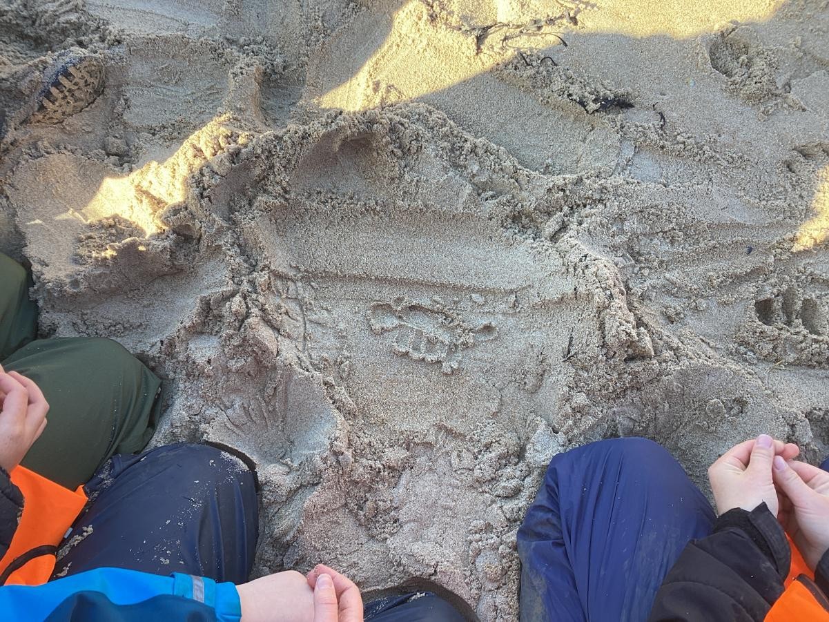 While we were listening to the prayer we made sand sculptures and drew pictures of Greyfriars Bobby in the sand. We sang 'Rejoice in the Lord Always' to end our worship.