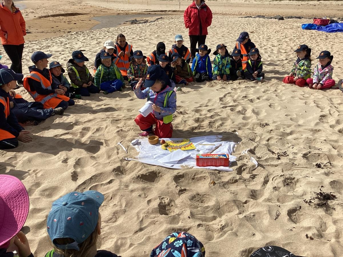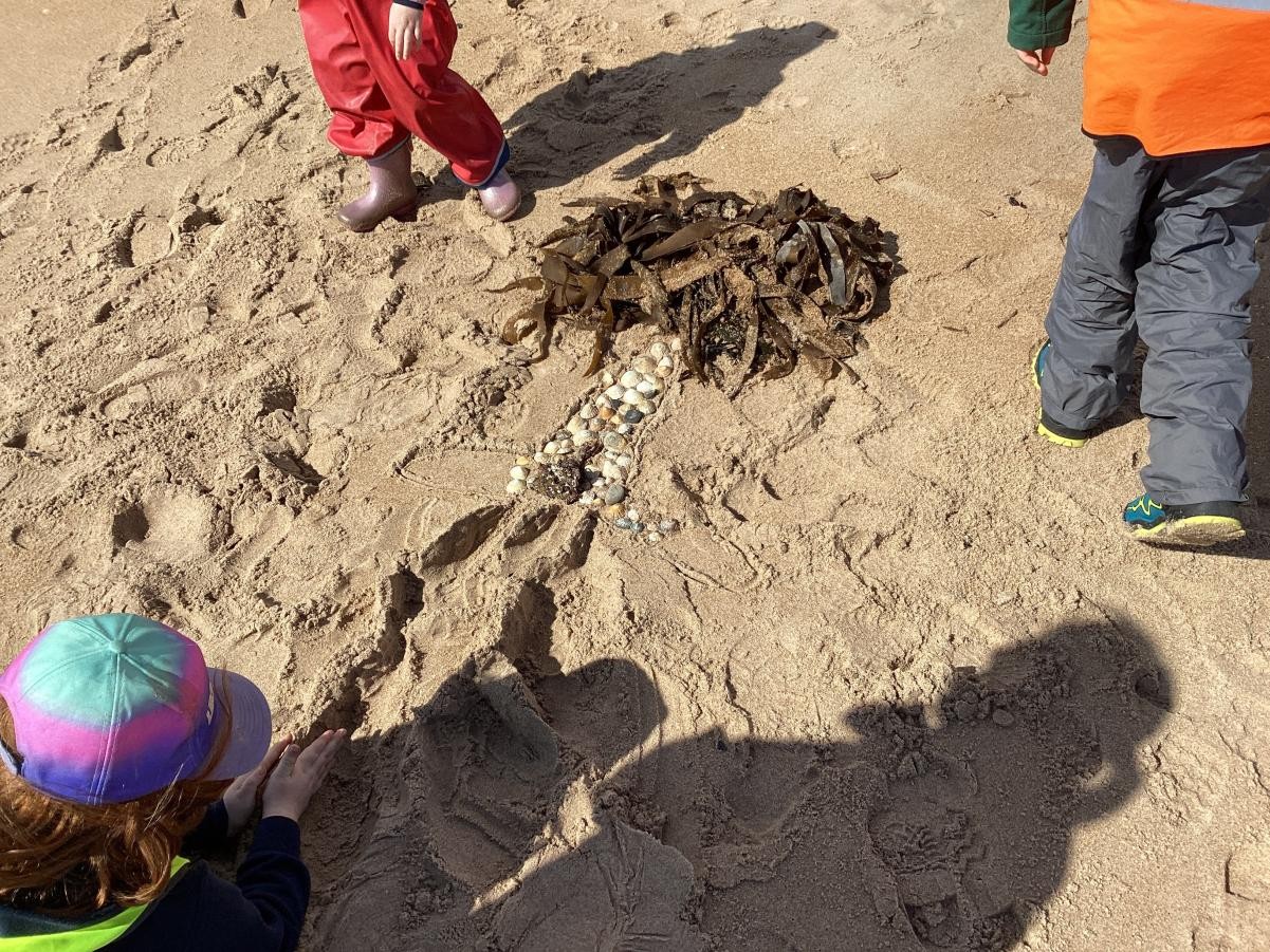 Today is National Love a Tree Day. There were lots of presents to unwrap in worship today. All the presents were made of things that trees have given us. There was a pencil, a rubber, a wooden ruler, a book, some paper, a bottle of olive oil, an apple, a banana, a wooden toy, wooden spoon, a wooden cross and a wooden bowl. We thought about all the other benefits, such as medicines, furniture, houses, homes for animals and compost too. The last parcel was and leaf and we found out that one vital gift of trees is that their leaves as they act as 'vacuum cleaners' to help keep our air clean. They absorb carbon dioxide and give out oxygen, helping us live and breathe. In small groups we made some trees from resources we found on the beach.