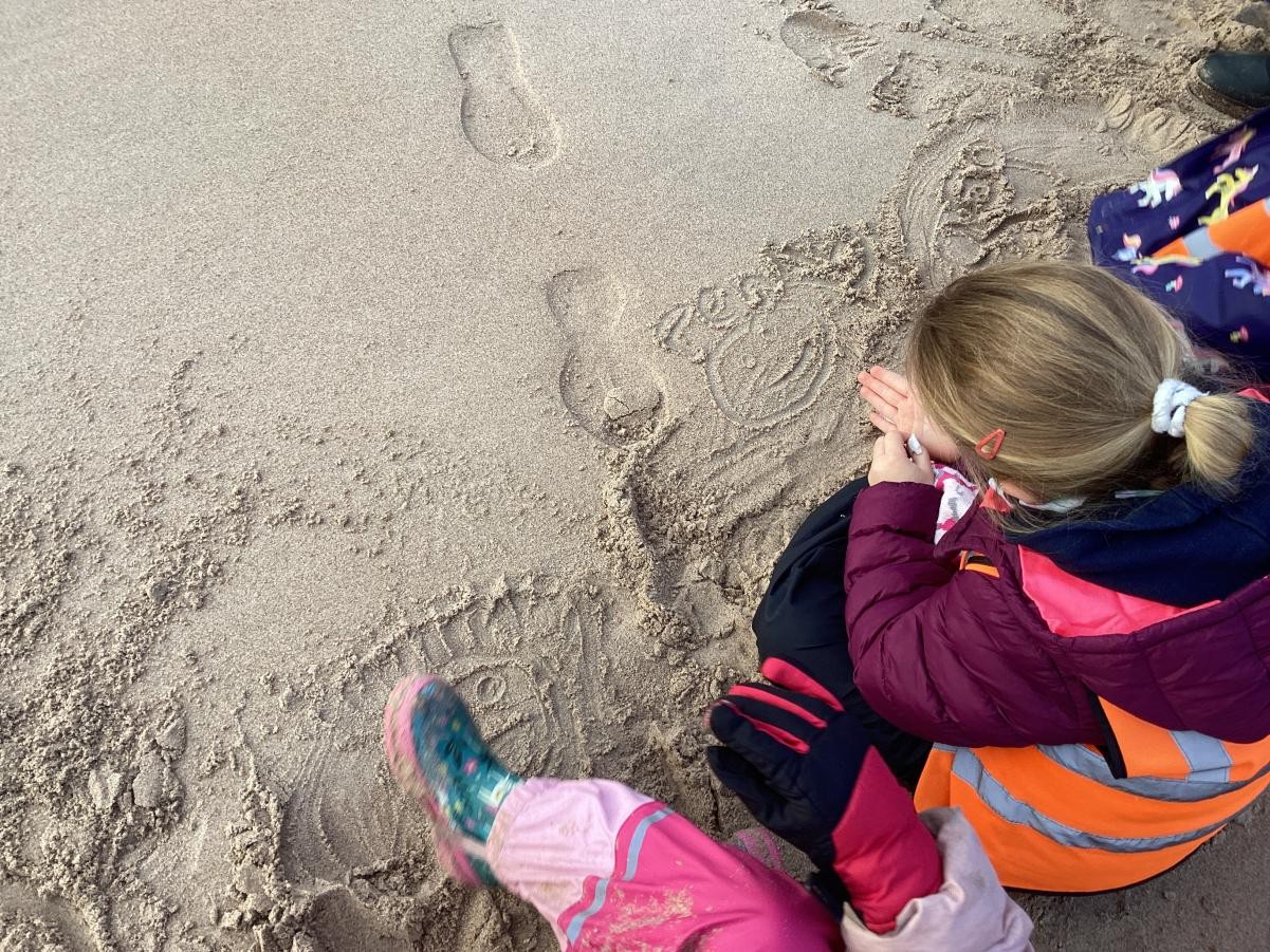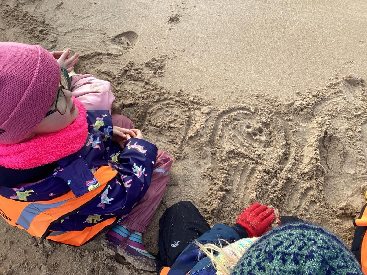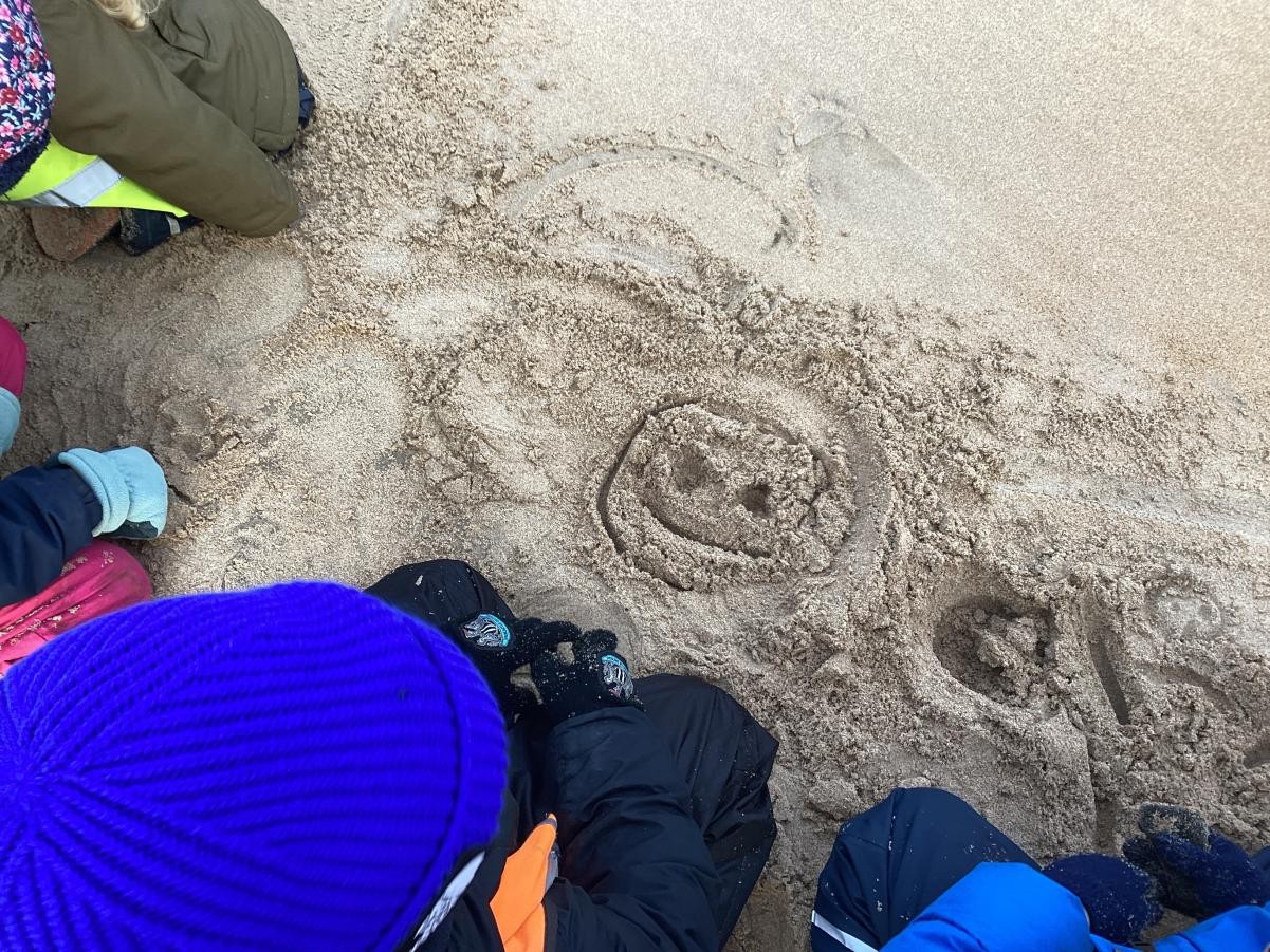 During some reflection time and our prayer time we drew pictures of our friends in the sand.